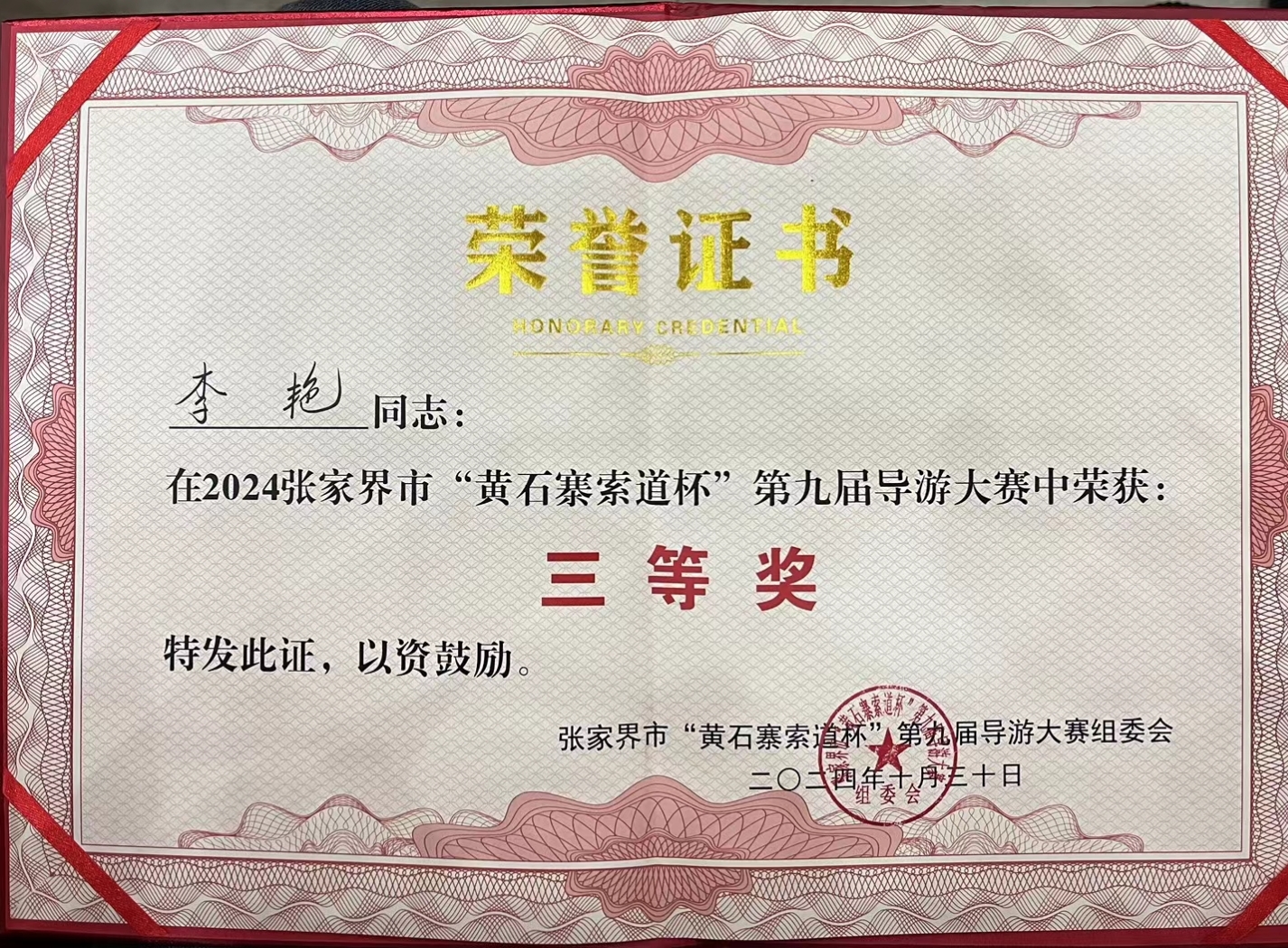 我們很高興地宣布,張家界康輝旅行社在近期舉行的黃石寨導(dǎo)游大賽中取得了優(yōu)異成績(jī),榮獲二等獎(jiǎng)和三等獎(jiǎng)。
