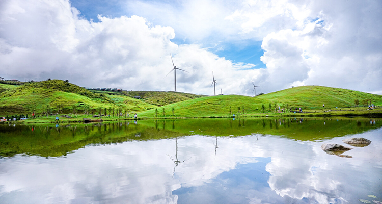 3、風(fēng)車群:山脊之上,數(shù)十座白色風(fēng)車擎天而立,巨大的葉片在風(fēng)中悠然轉(zhuǎn)動(dòng),與翠綠的草地相互映襯,構(gòu)成了壯觀而又浪漫的風(fēng)景線。沿著風(fēng)車步道漫步,微風(fēng)拂面,風(fēng)聲、風(fēng)車轉(zhuǎn)動(dòng)聲交織在一起,宛如奏響了一曲自然的樂(lè)章。