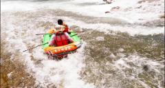 龍王峽漂流是落差大的自助峽谷漂流,河道長3.8公里,落差172米。河道經(jīng)過專家精心設(shè)計(jì)、科學(xué)施工,為勇者度身打造。出口陡懸,河床幽曲,沿河兩岸青山高聳、綠樹蔽日、危崖刺天、峭壁如削、神秘莫測。