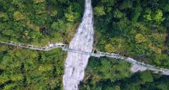 橫跨崖壁峽谷,凌駕綠樹(shù)翠竹,九龍江水幕玻璃棧道“掛在”水花飛濺的瀑布旁,融入秀美山水,宛如仙境之途。站在水幕玻璃棧道上俯瞰遠(yuǎn)望,有漫步高空的驚險(xiǎn)刺激,也有置身林間的悠然享受,帶上你默契的小伙伴,一起來(lái)感受較美水幕玻璃棧道的浪漫與唯美。