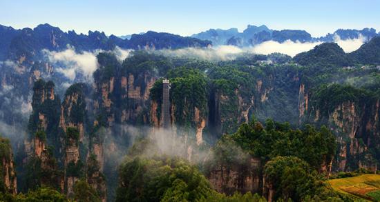 袁家界景區(qū)雖然在地域上隸屬于中國第一個國家森林公園——張家界國家森林公園,但從地理位置上來說,卻被眾星捧月般地位居張家界武陵源風(fēng)景名勝區(qū)的核心,與世界上最美麗的峽谷金鞭溪一衣帶水,東接索溪峪,南眺鷂子寨,西望黃石寨,北靠天子山,總面積約1200公頃,平均海拔1074米。